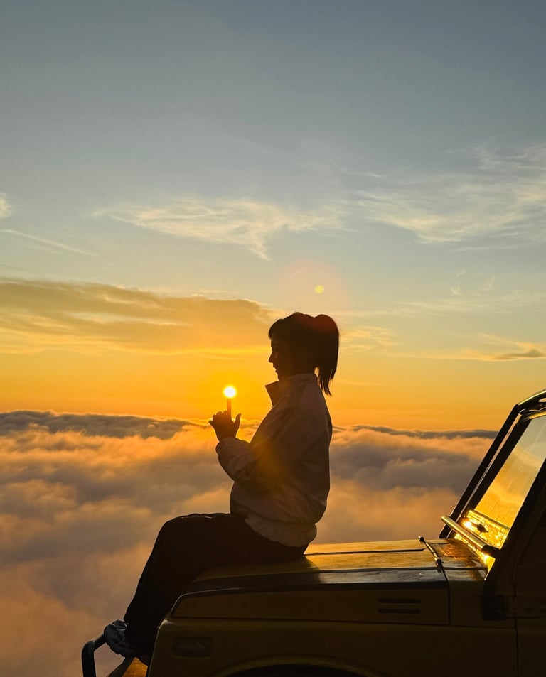Sekitar pukul 04:00–04:30, Anda akan tiba di titik awal perjalanan dan melakukan pergantian kendaraan dari mobil pick-up ke jeep 4WD untuk menuju sunrise point.Sunrise Point